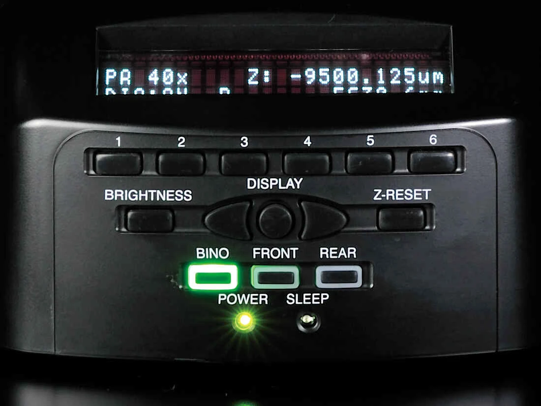 Điều chỉnh tự động trên Ni-E Bộ tụ quang, khẩu độ, màng chắn trường và bộ lọc ND được tự động thiết lập ở vị trí tối ưu theo độ phóng đại của vật kính đang sử dụng. Ngoài ra, khoảng cách di chuyển bàn XYZ trên mỗi vòng quay núm chỉnh nét và hiệu chỉnh độ lệch tiêu cự được điều chỉnh tự động. | Tái tạo điều kiện quan sát trên Ni-E Bạn có thể gán các điều kiện quan sát đã chọn cho từng nút riêng biệt, cho phép thay đổi chỉ bằng một thao tác nhấn nút. Điều này đặc biệt thuận tiện khi tái tạo các điều kiện quan sát cụ thể. | Lấy nét bằng động cơ độ chính xác cao trên Ni-E Chức năng lấy nét Z độ chính xác cao cung cấp thông tin vị trí Z chính xác cần thiết để sử dụng với kính hiển vi laser quét tiêu điểm và hỗ trợ thu thập dữ liệu chuỗi Z tự động. Các núm điều chỉnh lấy nét thô và tinh riêng biệt giúp thao tác dễ dàng hơn. |