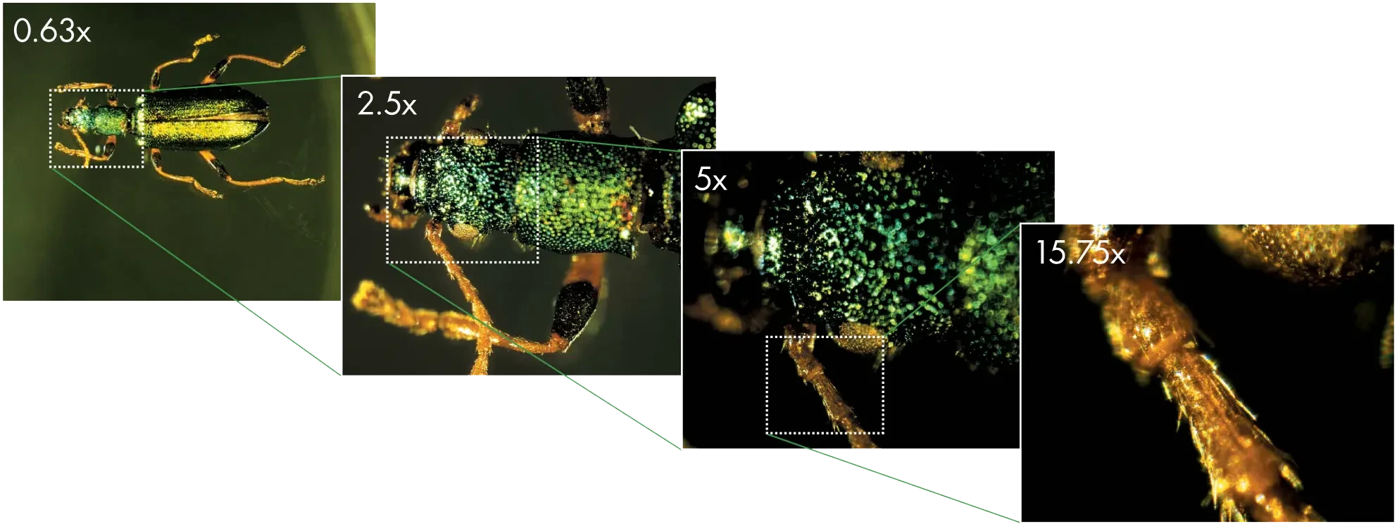 Phạm vi thu phóng lớn cho phép chụp ảnh macro đến micro với độ phân giải cao