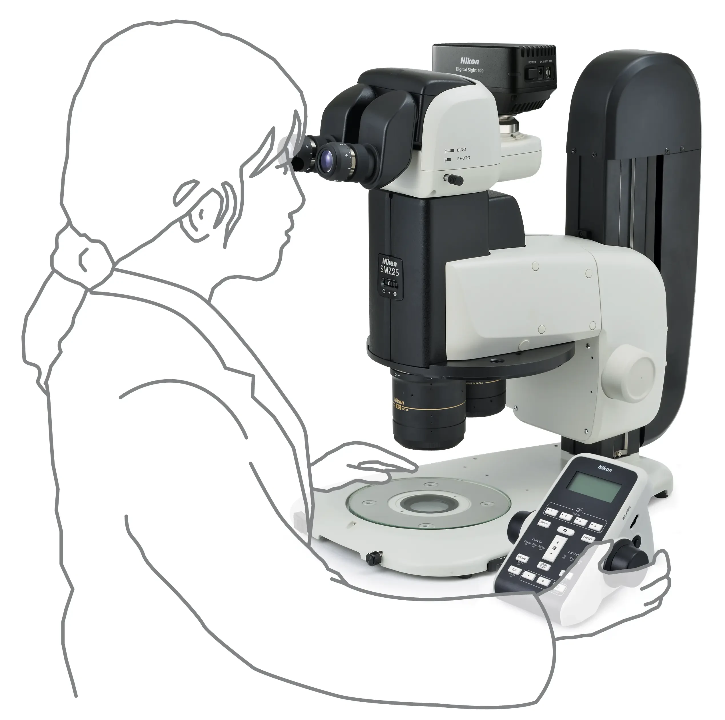 Dòng SMZ25 là kính hiển vi soi nổi đầu tiên trên thế giới sử dụng thấu kính mắt ruồi trên bộ phận gắn huỳnh quang phản xạ. Thiết kế cải tiến này đảm bảo ánh sáng mạnh và đồng đều ngay cả ở độ phóng đại thấp, mang lại độ sáng đồng nhất không bị ảnh hưởng trên một trường nhìn rộng.