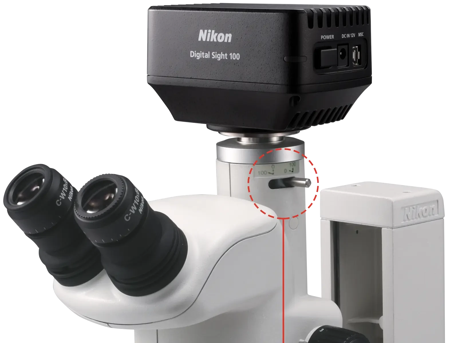 SMZ745T tích hợp cần gạt chuyển đổi đường dẫn quang học, cho phép dễ dàng chuyển đổi truyền quang giữa thị kính và camera.