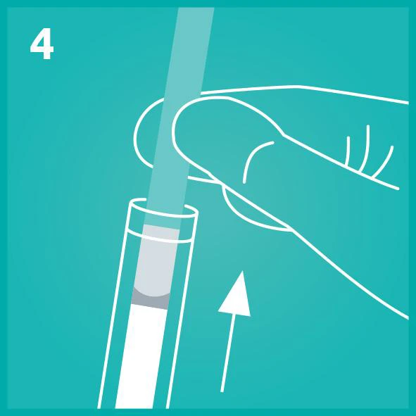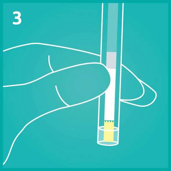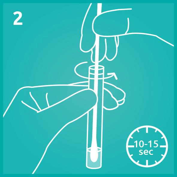 Bước 2: Xoay mạnh tăm bông trong ống dung dịch chiết mẫu trong 10-15 giây. Lấy tăm bông ra và miết đầu tăm bông vào thành của ống. | ![]() |